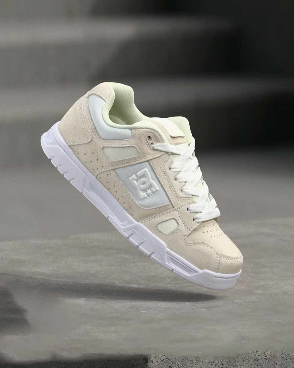 Τα DC Stag Leather Shoes σε απόχρωση Offwhite προσφέρουν κλασικό skate στυλ με άνεση και αντοχή υψηλού επιπέδου.