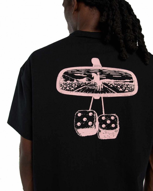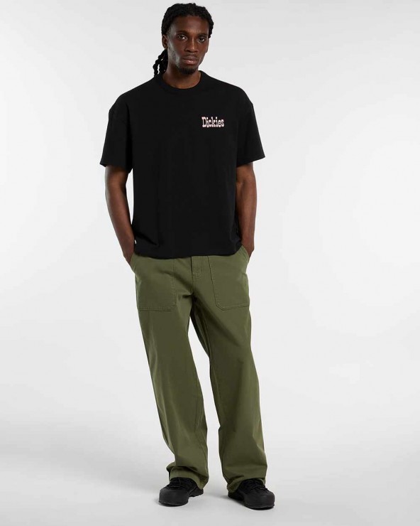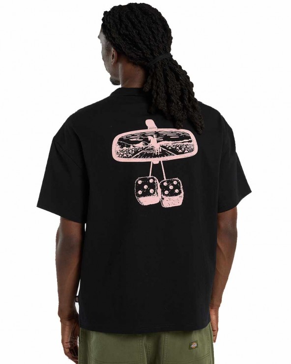 - Features: Western-inspired front graphic (rearview mirror & dice), woven Dickies side label, straight hem, short sleeves