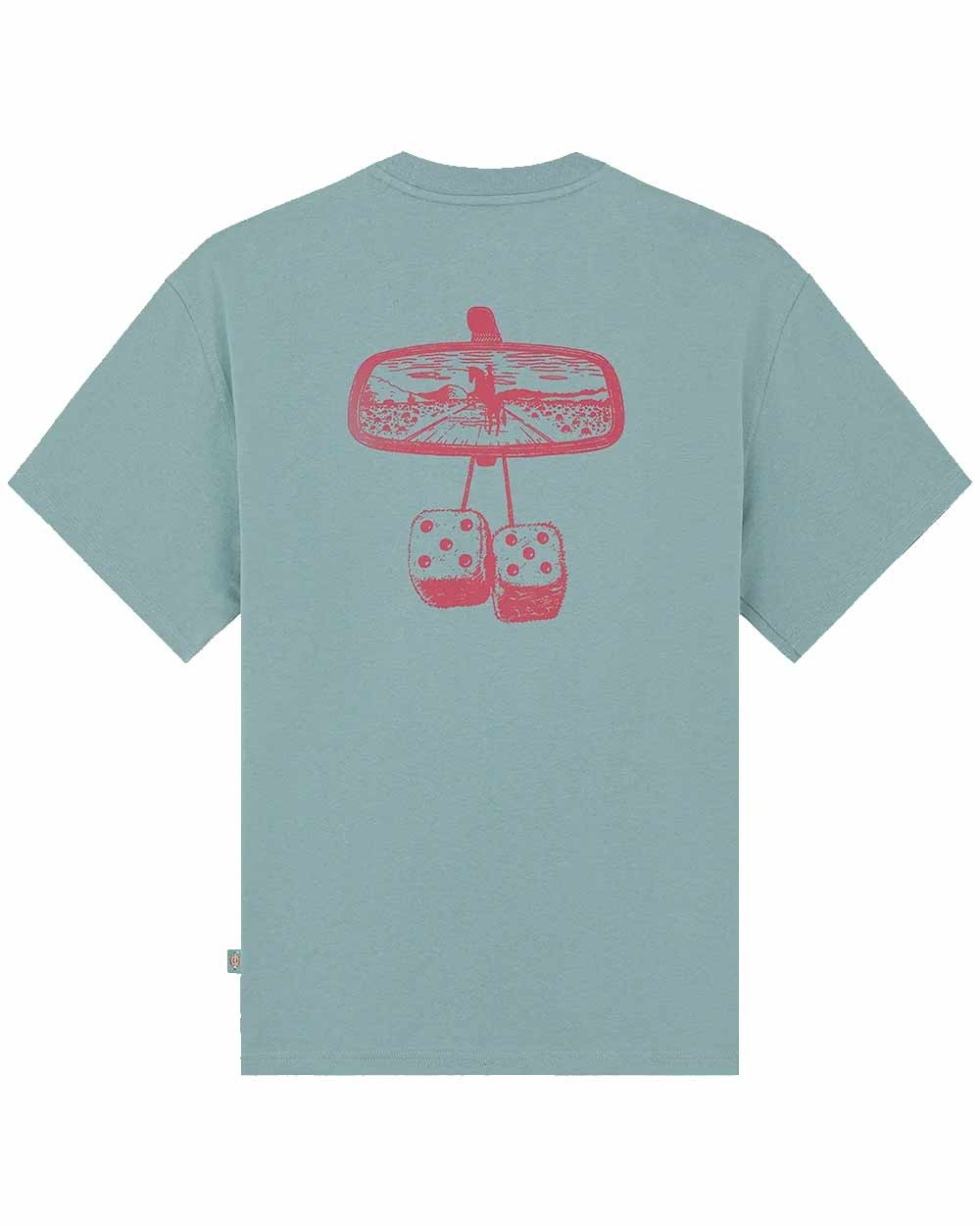 - Features: Western-inspired front graphic (rearview mirror & dice), woven Dickies side label, straight hem, short sleeves