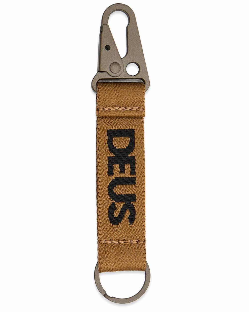 The anodized aluminum snap-hook pairs with a sturdy keyring to secure your essentials, while the nylon webbing with jacquard Deus artwork gives a premium touch. Measuring approximately 15.5 cm long, it’s designed to carry what matters without excess.