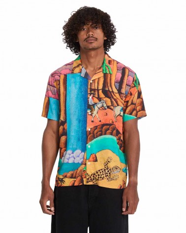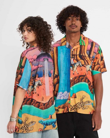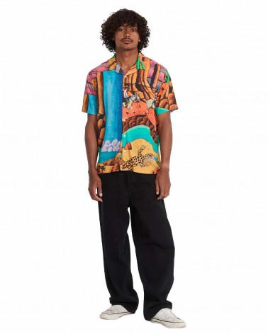 The Mickey Mason Shirt – Multi from Volcom is part of the Featured Artist series, showcasing artwork by Mickey Mason. The all-over design gives the shirt a strong visual identity, while the boxy fit creates a relaxed silhouette that works perfectly for warm days.Lightweight viscose fabric keeps it breathable and comfortable, making it a standout piece for summer outfits, beach days, or laid-back city wear.